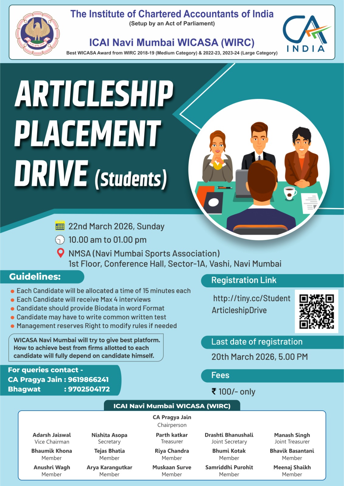22 03 2026 WICASA Articleship Placement Drive Student Flyer