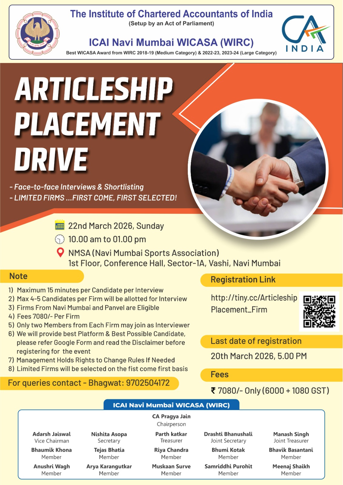 22 03 2026 WICASA Articleship Placement Drive Firm Flyer